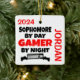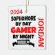 This ornament featuring the quote "Sophomore by Day Gamer by Night" is perfect for any sophomore that loves playing video games.