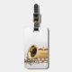 This luggage tag has an image of a curved soprano saxophone.