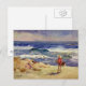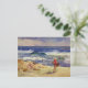 Sorolla - Boy on the Sand postcard. Impressionism painting by Joaquin Sorolla of a boy in a red shirt at the beach.