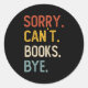 Sorry Can't Books Bye Shirts Funny Books Lovers Classic Round Sticker