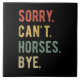 'Sorry. Can't. Horses. Bye.' fun quote for a horse lover, pony mom, or horse dad to wear every day.