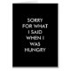 This simple card is accented with the funny but true saying, SORRY FOR WHAT I SAID WHEN I WAS HUNGRY. You get to finish the rest of the message, since the inside has been left blank, awaiting your creativity.