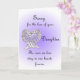 This card features a white and purple gradient background with angel wings in the shape of a love heart and the wording "Sorry for the loss of your Daughter. The ones we love stay in our hearts forever"