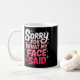 Sorry For What My Face Said Funny Sarcastic Minima Coffee Mug