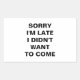 SORRY I'M LATE. I DIDN'T WANT TO COME Sticker