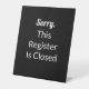 You can edit the white display text to create a custom message for your business. The black sign says: Sorry, This Register Is Closed. The top line of the display text is a script.