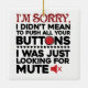 Funny and cute funny saying in modern black and red typography. The text on the button says "I'm Sorry I Didn't Mean To Push All Your Button. I Was Looking For Mute" Perfect for anytime of the year and makes a great gift for someone with a good sense of humour