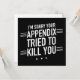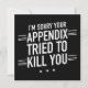 I'm Sorry Your Appendix Tried to Kill You - A humourous and empathetic message for anyone recovering from appendicitis. Let them know you're thinking of them with this lighthearted design.