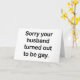 SORRY YOUR HUSBAND TURNED OUT TO BE GAY. CUSTOMIZABLE GREETING CARD: ADD YOUR OWN TEXT. I ALWAYS KNEW MY HUSBAND WAS GAY. GAY HUSBAND. HAPPY DIVORCE. HILARIOUS DIVORCE CARD. COMING OUT CARD. MY HUSBAND LOVES OTHER MEN. MY HUSBAND PRETENDS HE'S GAY.