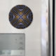 Magnet with "Soul's Essence," an Apophysis fractal by Susan Wallace. Copyright © 2009, Susan Wallace. A glowing gold spark is the focal point of this curvilinear abstract design in blue, purple and brown.