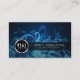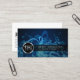 This dark themed sound engineer business card features a chrome icon of a volume sliders enclosed within a chrome circle over a dark background of jumbled music notes. Your business name and text/tagline appear within a black text panel strip that runs from the icon from the left towards the right edge of the card. The background of the card consists of a dark themed grunge pattern. Your contact details appear on the lower left on the back of the card. Perfect for music, musician, entertainment, show business, arts, artistic,  professional, impact, dark themes.