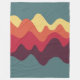 A design made up of irregular wave or hill like shapes arranged like a landscape with a progression of bands one behind or on top of another abstractly playing with colour and space. The design is also very reminiscent of sound and music with the wave like shapes and harmonising colours.