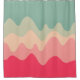 A design made up of irregular wave or hill like shapes arranged like a landscape with a progression of bands one behind or on top of another abstractly playing with colour and space. The design is also very reminiscent of sound and music with the wave like shapes and harmonising colours.