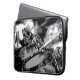 Black and white image of drum kit