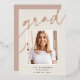 Customisez ce faire-part chic de graduation avec une photo de carré superposée sur le mot "GRAD" en écriture de feuille d'or rose, avec votre nom, l'école, et l'année de graduation. Ajoutez une photo supplémentaire et un message personnel à l'arrière.