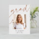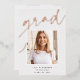 Customisez ce faire-part chic de graduation avec une photo de carré superposée sur le mot "GRAD" en écriture de feuille d'or rose, avec votre nom, l'école, et l'année de graduation. Ajoutez une photo supplémentaire et un message personnel à l'arrière.