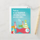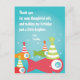 Cette carte postale de remerciement présente une magnifique couleur bleu aqua avec des poissons colorés au premier plan. Les poissons sont mignons avec des casquettes de fête. Merci à tous vos invités d'être venus à votre fête d'anniversaire ou à un autre événement. Si vous avez besoin d'aide ou si vous avez des questions, contactez-moi à jen@designsbynyxxie.com.