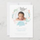 Sous le thème de la mer faire-part bébé dispose d'une baleine, requin tigre, gelée, tortue de mer et hippocampe le tout nageant en cercle avec herbe de mer et coquillages.