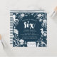 Les invitations à la fête d'anniversaire de la vie marine adorables pour le sixième anniversaire de votre enfant présentent un arrière - plan bleu foncé avec des illustrations de vie marine blanche entourant les détails de votre fête d'anniversaire.