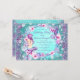 Sirène sous la mer invitations fête d'anniversaire avec jolie sirène violette sur un beau bleu violet et turquoise sous la mer arrière - plan avec coquillages, hippocampes, fleurs et corail. Vous pouvez facilement customiser ces belles couleurs violet et bleu turquoise sous les invitations de fête d'anniversaire de la mer pour votre événement en ajoutant simplement vos détails d'événement dans le style de police et le libellé de votre choix. Il s'agit d'un design imprimé sans véritable parties scintillant, bijoux, etc.