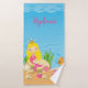 Serviettes de bain adorables avec une princesse assez blonde de sirène sur la roche, entourée le corail, les crabes, les poissons et les mollusques et crustacés et un arrière - plan bleu. C'est une grande idée de cadeau. Personnalisez avec votre propre texte spécial. Articles assortis disponibles dans notre magasin. Quelques graphiques par l'urbanwillow.