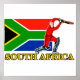 A South African Cricket Player beside a South African Flag with the country name South Africa on the bottom