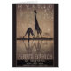 Two giraffes drink at a watering hole. This classic art poster advertising South Africa.