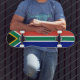 This design features the national flag of South Africa (officially the Republic of South Africa), which is the southernmost country in Africa. About 80% of South Africans are of Black African ancestry, while the remaining population consists of large communities of European, Asian and multiracial ancestry. South Africa has three capital cities: executive Pretoria, judicial Bloemfontein and legislative Cape Town. The most populous city is Johannesburg; other major cities are Durban, East London, Pietermaritzburg, Port Elizabeth, Soshanguve and Vereeniging. South Africa is often referred to as the "rainbow nation" to describe the country's multicultural diversity, especially in the wake of apartheid.