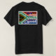 A host of South African slang words and colloquialisms displayed on the flag of South Africa, (black, white, blue, red, green and gold). Boerewors, bokkie, brak, Bra, bru, cherry, braai, eina!, Dop, dof, baas, blou, jislaaik!, Gesuip, hoesit, paraat, skief, Skinner, skop, goof, katkop, klankie, kwaai, lekker, muggie, moer-toe, skraal, skrik, Smaak, voertsek, tekkies.
