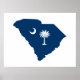 The shape of South Carolina in blue with white with the familiar palmetto and crescent.