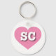 This keychain features a vibrant pink heart containing the bold, white, upper case letters SC, the official abbreviation for South Carolina, the palmetto state.