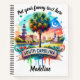 A colourful illustration showcases South Carolina's iconic landmarks, featuring a towering palm tree and historical buildings, all bathed in the warm glow of sunset tones.