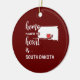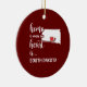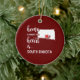 of the state and a red heart. Set on deep Christmas red. Personalize one side with