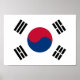 The South Korean flag is a white field with in the centre an emblem and four trigrams on each corner of the flag. The used colours in the flag are blue, red, white, black. The proportion of the South Korean flag is 3:2. The Flag of South Korea was adopted in 1883. The first use of the current flag design was in 1882. The last change to the current South Korean flag design was in 1948.