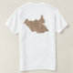 The front of this t-shirt bears a small South Sudanese flag with its familiar yellow star on blue triangle with black, red and green bands to the right, while the back displays a relief map of South Sudan. Available on t-shirts, sweatshirts, polos, long-sleeves and more.