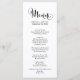 This southern belle calligraphy dinner menu card is perfect for a modern wedding. The minimalist design features rustic yet elegant black and white typography with whimsical flourishes for a simple look. This menu can be used for a wedding reception, rehearsal dinner, or any event.