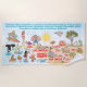 Bright and charming scene offers a list of beaches and a whimsical view of Southern California - fun and friendly characters enjoy the warm California sun showcasing Los Angeles, Orange County, San Diego, Santa Barbara, Riverside, Palm Springs and El Centro as well as Lake Arrowhead, Joshua Tree, Anza Borrego, and the Salton Sea plus the border cities of Tijuana, Tecate, and Mexicali. Beaches include: Coronado Beach • Mission Bay Park • La Jolla Cove • South Carlsbad State Beach • Doheny State Beach • Treasure Island Beach • Diver's Cove • Balboa Peninsula Beach • Huntington State Beach • Descanso Beach • Hermosa Beach • Manhattan Beach • Venice Beach • Santa Monica State Beach • Malibu Lagoon State Beach • Point Dume • El Matador State Beach.