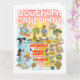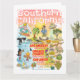 This whimsical greeting card offers a spectacular view of Southern California - wacky characters frolic on the beach and desert of SoCal showcasing Los Angeles, San Diego, Orange County, Santa Barbara, Palm Springs, El Centro, Laguna Beach, Huntington Beach, Beverly Hills, La Jolla, and Anza Borrego and Joshua Tree parks as well as the border cities of Tijuana, Tecate and Mexicali. This charming scene has it all – a surfer hangs ten while a killer whale leaps out of the water, a hiker is scanned by a UFO and much more…