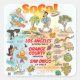 This bright and colourful scene offers a spectacular view of Southern California - wacky characters frolic on the beach and desert of SoCal showcasing Los Angeles, Orange County, San Diego, Santa Barbara, Palm Springs, El Centro, Beverly Hills, Anaheim, La Jolla, Anza Borrego, and Joshua Tree parks as well as the border cities of Tijuana, Tecate, and Mexicali. This charming scene has it all – a surfer hangs ten while a killer whale leaps out of the water, a hiker is noticed by a UFO, and much more…