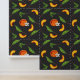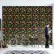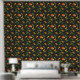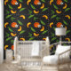 Bold southern peaches, leaves, and peach blossom patterned wallpaper. This wallpaper would make a striking accent wall with its high contrasting charcoal grey background.