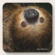 This image shows a sloth hanging upside-down from a tree branch. A sloth's body consists of a short neck with four long limbs of equal length, ending in two 3 to 4 inch long curved claws. The head is short and flat, with a snub nose, rudimentary ears, and large eyes. Sloths are a walking ecosystem. They possess a short, fine undercoat, and an overcoat of longer, coarser hairs, which turn green in moist conditions due to algae growth. | "Smithsonian" and the Smithsonian logo are registered tradem