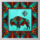 Decorate Your Home with this Unique "One of a Kind" Southwest Buffalo Poster! It Features a Southwest Buffalo Silhouette on a Turquoise Background...Surrounded by a Southwest Border in Turquoise, Orange & Black!