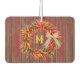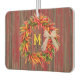 Personalize this air freshener with your own initial on a design featuring a colourful chile pepper ristra wreath tied with a raffia bow on an old weathered wood background. The original painting was inspired by the chile ristras and wreaths the artist hung at her home in New Mexico. Ristras are a symbol of welcome said to bring good health and good luck.