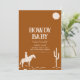 Celebrate the upcoming arrival with this charming baby shower invitation, featuring a warm burnt mauve background that radiates cozy southwestern vibes. Adorning the bottom of the template, a cowboy on a horse and a cactus —adding a playful, yet elegant touch. In the centre, all the party details are beautifully arranged in a modern, easy-to-read font, creating a perfect blend of style and functionality. Whether you're hosting a small gathering or a larger celebration, this invitation is sure to set the tone for a memorable event!