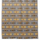 Navajo Native American style southwest geometric pattern with earth tones of warm sand, slate grey, golden brown, and muted blue line accents.
