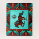 Enjoy this Unique "One of a Kind" Southwest Horse Puzzle! It Features A Southwest Galloping Horse Silhouette on a Turquoise Background....Surrounded by a Southwest Border in Turquoise, Orange and Dark Black!