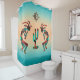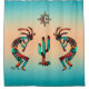 Decorate Your Bathroom with this Unique "One of a Kind" Southwest Kokopelli Shower Curtain! It Features Two Southwest Kokopelli Playing the Flute and Dancing Around a Cactus Under the Sun on a Turquoise and Orange Sunset Background!