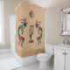 Decorate Your Bathroom with this Unique "One of a Kind" Southwest Kokopelli Shower Curtain! It Features Two Southwest Kokopelli Playing the Flute and Dancing Around a Cactus Under the Sun on a Tan Background!