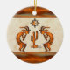 Personalize this "One of a Kind" Southwest Kokopelli Christmas Ornament! It Features Two Southwest Kokopelli in Copper and Black Playing the Flute and Dancing Around a Cactus....Under the Sun on a Sandstone Background!