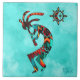 Brighten Your Home with this Unique "One of a Kind" Southwest Kokopelli Tile! It Features a Southwest Kokopelli in Turquoise, Orange and Black Playing the Flute and Dancing Under the Sun on a Turquoise and White Watercolor Background!